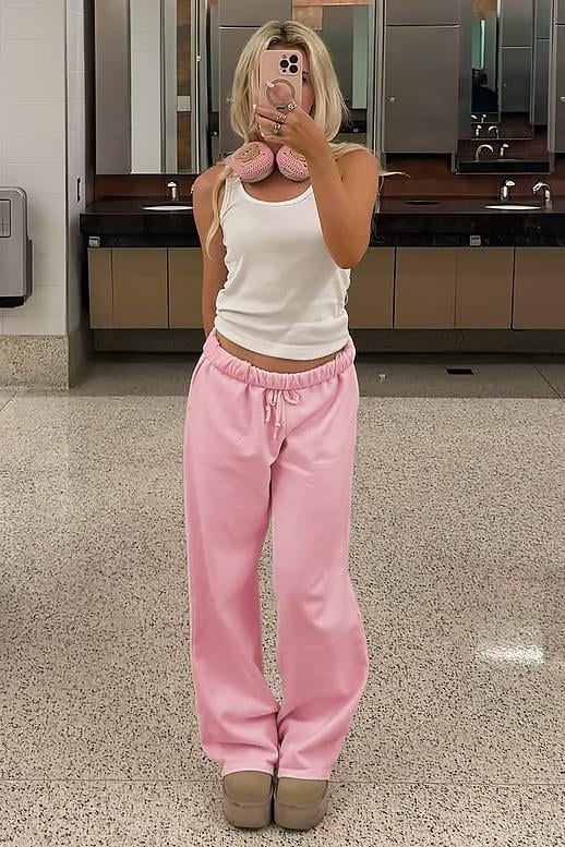 Pembe Basic Boru Paça Kadın Eşofman Altı SH262